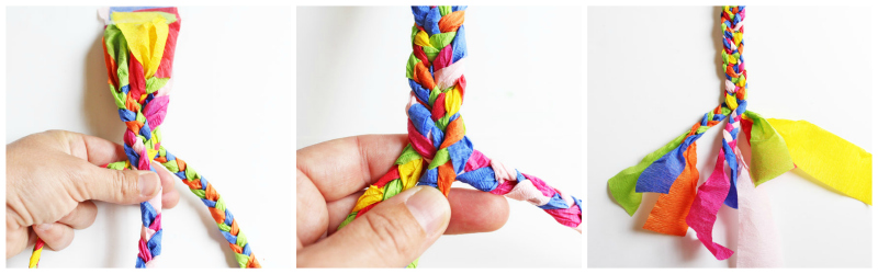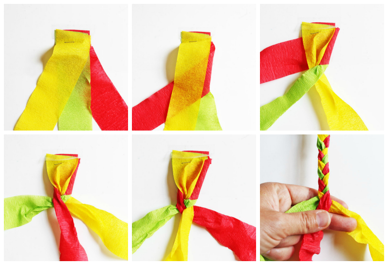 مراحل قبلی را برای دو سری سه تایی کاغذ کشی دیگر تکرار کنید تا سه رشته بافته شده از رنگهای مختلف داشته باشید.
