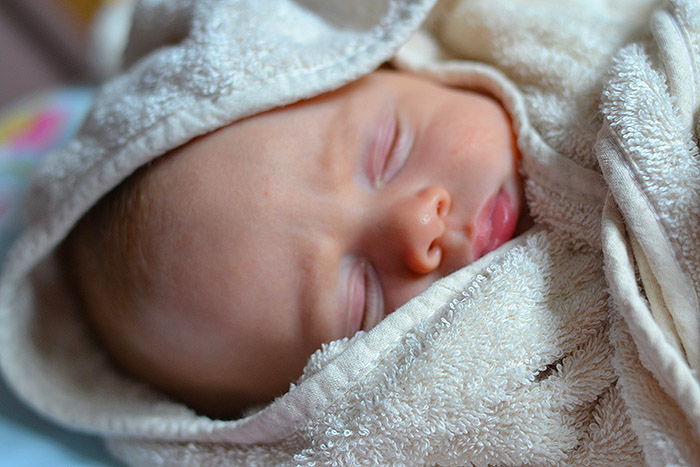 لباس نوزاد را به او بپوشانید و از تماشای خواب بعد از حمام نوزادتان لذت ببرید.