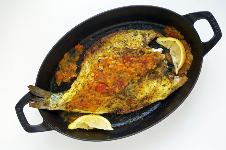 پیشنهاد میکنم در ماهیتابه را ببندید و صبر کنید تا این ماهی خوشمزه، آهسته روی شعله بسیار کم، مغز پخت شود.
