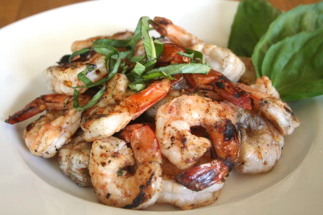 هنگامی که میگو کاملا پخته شد، آن را از روی باربیکیو بردارید و یک بار دیگر مقداری ریحان، نمک و آبلیمو به آن بزنید.